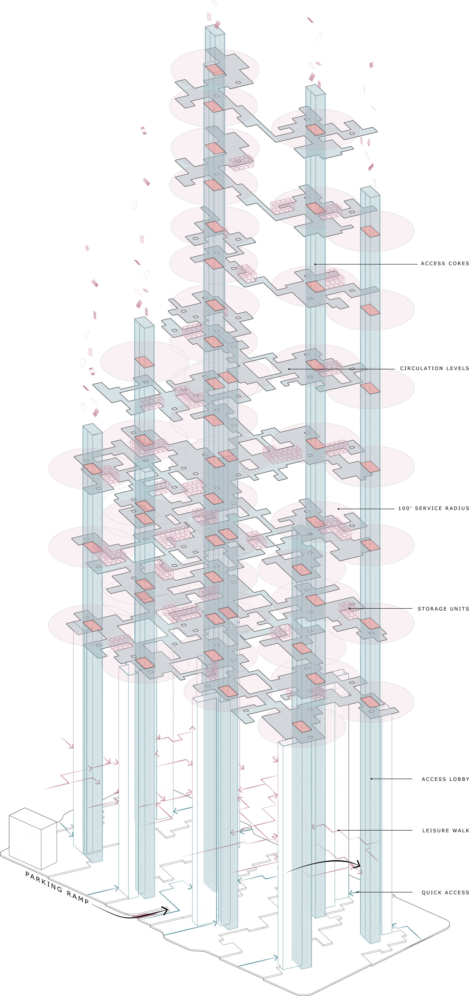 This project looks at affordable housing with a fresh perspective. It is based on a 300sq ft. micro-unit module massed in a way to maximize daylight and open space. The structure of the unit then serves as a customizable framework for the inhabitants of the space.